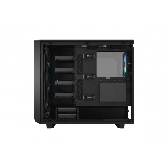 Meshify 2 RGB je vysoce výkonná skříň s odvážným estetickým vzhledem inspirovaným technologií stealth. Její nápadný exteriér je vybaven zapuštěným tvrzeným sklem bez šroubů, plně odnímatelnou horní částí poskytující vynikající přístup do interiéru a přední částí s USB-C, výklopným síťovým panelem a odnímatelným nylonovým filtrem. Flexibilní dvouvrstvý interiér podporuje velká úložná pole a sestavy s více chladiči, díky nimž je chlazení hračkou.