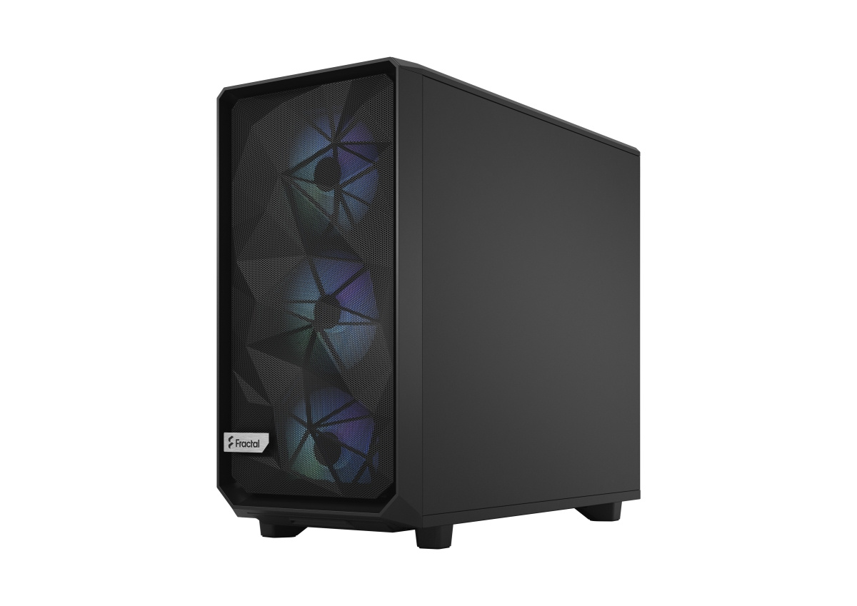 Meshify 2 RGB je vysoce výkonná skříň s odvážným estetickým vzhledem inspirovaným technologií stealth. Její nápadný exteriér je vybaven zapuštěným tvrzeným sklem bez šroubů, plně odnímatelnou horní částí poskytující vynikající přístup do interiéru a přední částí s USB-C, výklopným síťovým panelem a odnímatelným nylonovým filtrem. Flexibilní dvouvrstvý interiér podporuje velká úložná pole a sestavy s více chladiči, díky nimž je chlazení hračkou.