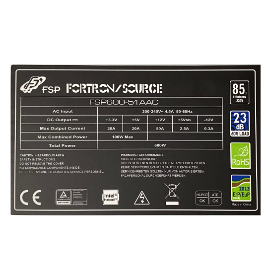 FSP FSP600-51AAC/600W/ATX/Bulk