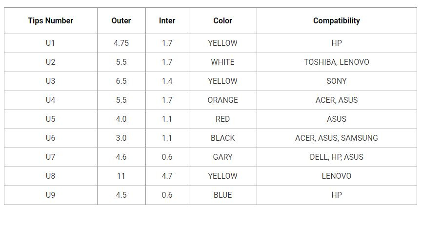 *Kompatibilní s většinou 18 ~ 20V vstupních notebooků