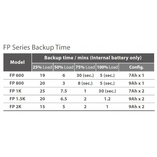FP série UPS FSP/Fortron nemá možnost komunikace s PC (není obsažen USB ani RS-232 komunikační port). V případě požadavku na komunikační port použijte UPS z řady EP série.