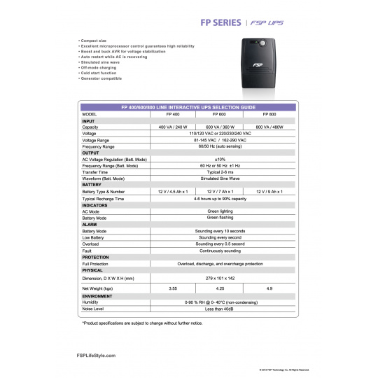 FSP UPS FP 800, 800 VA / 480 W, line interactive