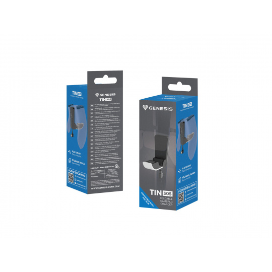 Chcete ještě pohodlnější způsob doplňování energie do gamepadů? Sáhněte po GENESIS Tin 305. Tato kompaktní nabíječka se snadno používá. Stačí ji zapojit do portu USB-C konzole, rozložit ji a položit na ni ovladač. Proces nabíjení se spustí automaticky. Je to opravdu jednoduché.