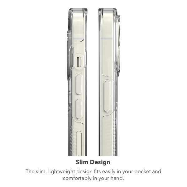 Transparentní kryt kompatibilní se systémem MagSafe vyrobený z materiálu D3O®, díky kterému zařízení ochrání při pádech z výšky až 4 metrů. Jeho povrch je obohacen o antimikrobiální vrstvu. Při výrobě krytu byl použit materiál D3O® Crystalex, díky tomu deklaruje ochranu zařízení při pádech z výšky až 4 metrů. Materiál je současně vytvořen tak, aby odolával zežloutnutí a přenosu barev a zůstal křišťálově transparentní.