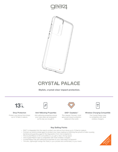 Ochranný kryt opatřený vrstvou D3O®, díky které vaše zařízení ochrání při pádech z výšky až 4 metrů. Povrch krytu je navíc ošetřen antimikrobiální vrstvou RepelFlex. Při výrobě krytu byl použit materiál D3O® Crystalex, díky tomu deklaruje ochranu zařízení při pádech z výšky až 4 metrů. Materiál je současně vytvořen tak, aby odolával zežloutnutí a přenosu barev a zůstal křišťálově transparentní.