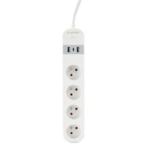 Chytrá vnitřní prodlužovačka se 4 zásuvkami typu francouzského standardu a USB nabíjecími porty