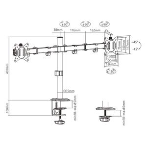 Adjustable desk 2-display mounting arm (rotate, tilt, swivel), 17”-32”, up to 9 kg