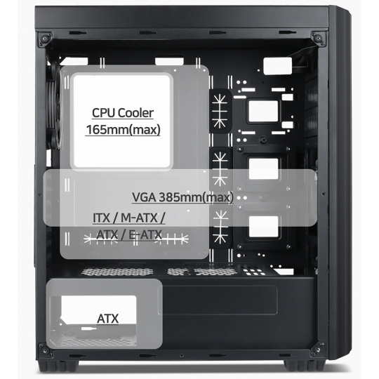 Podporuje základní desky: E-ATX, ATX, Micro ATX, mini - ITX