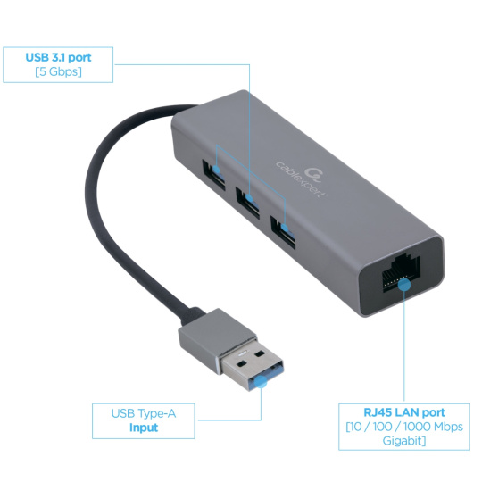 datasheetGembird USB-A/LAN, 3x USB 3.0