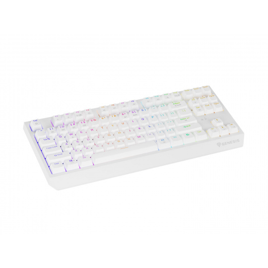 GENESIS herní klávesnice THOR 230/TKL/RGB/Outemu Red/Bezdrátová USB + Bluetooth/US layout/Bílá