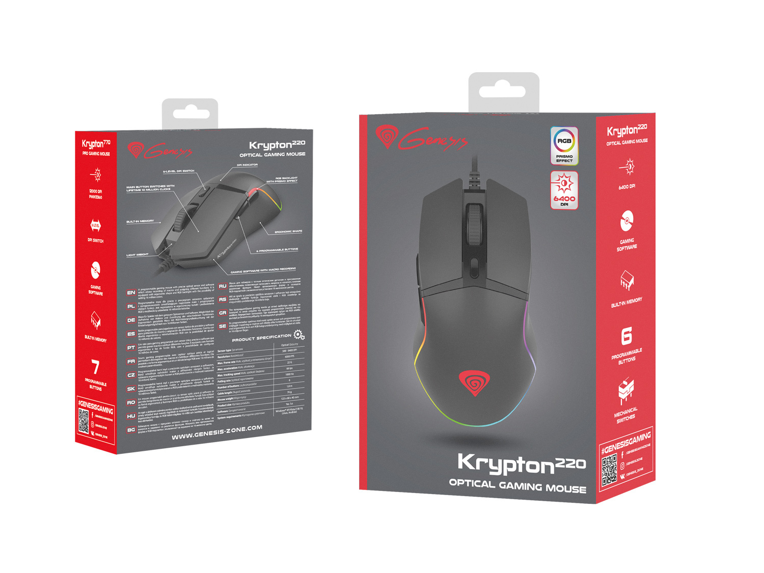 krypton220.htmlGenesis herní optická myš KRYPTON 220/RGB/6400 DPI/Herní/Optická/6 000 DPI/Drátová USB/Černá