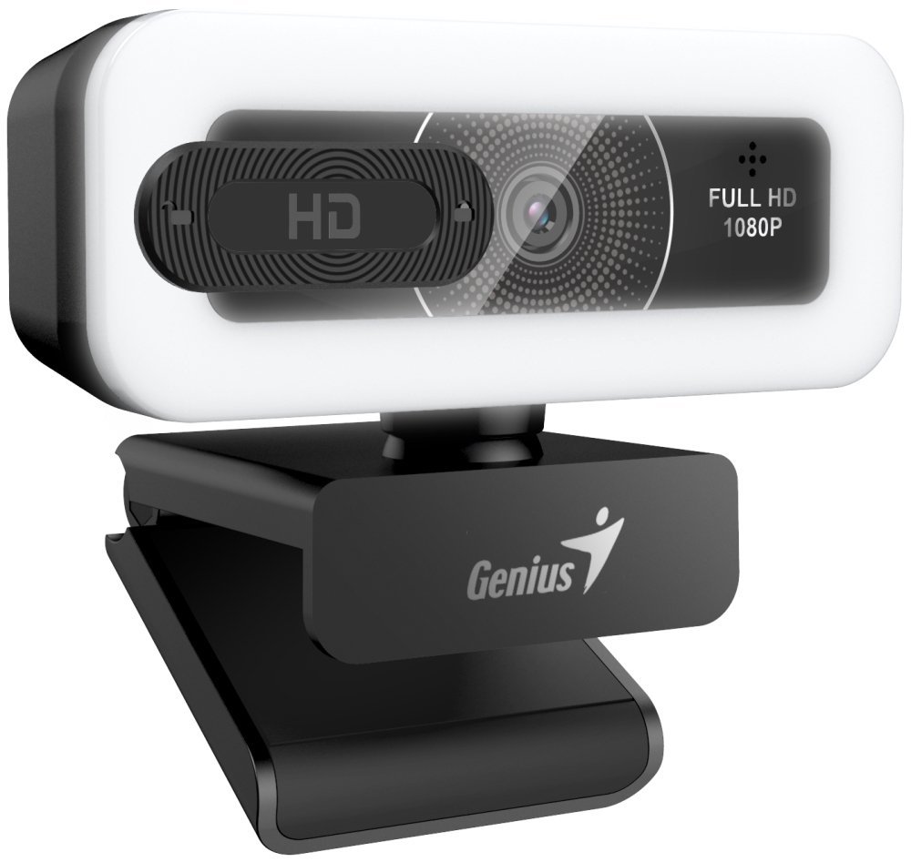 Genius FaceCam Light Webkamera, Full HD 1080p, LED osvětlení, vestavěný mikrofon, krytka soukromí, USB/C, černá