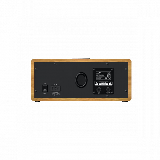 GENIUS SP-HF505BT - světlé dřevo *Jednodílné stereo Bluetooth dřevěné reproduktory pro poslech z mobilních telefonů, tabletů, PC nebo audio zařízení *Celkový výstupní výkon 20 wattů (RMS) *Dva 1,5" výškové reproduktory pro čisté výšky (jeden pro každý kanál) *Dva 3" basové reproduktory pro rozšířený střední a hluboký bas (jeden pro každý kanál) *Bezdrátová technologie Bluetooth 5.3 *Vstup AUX (Line in) pro připojení dalších audio zařízení *Sluchátkový výstup pro připojení sluchátek Specifikace: Verze Bluetooth -Bluetooth 5.3 Celkový výstupní výkon -20W RMS Reproduktorové jednotky -Basový reproduktor: 3" x 2, Výškový reproduktor: 1.5" x 2 Frekvenční odezva -80Hz ~ 20KHz Ovládání na předním panelu -Ovládání hlasitosti, sluchátkový výstup Napájení -100-240V~50/60Hz Hmotnost (gramy) -Přibližně 1326 g Rozměry (Š x V x H) mm (palce) -110 x 207 x 133.4 mm (4.33 x 8.15 x 5.25 palce) Systémové požadavky -Ideální pro mobilní telefon, tablet, PC, notebook nebo hudební zařízení s podporou Bluetooth