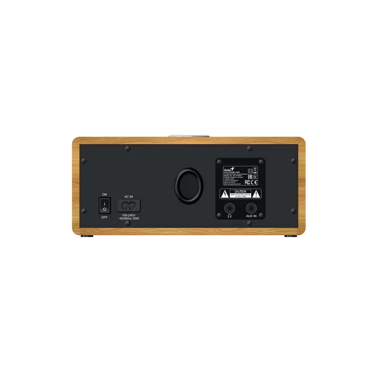 GENIUS SP-HF505BT - světlé dřevo *Jednodílné stereo Bluetooth dřevěné reproduktory pro poslech z mobilních telefonů, tabletů, PC nebo audio zařízení *Celkový výstupní výkon 20 wattů (RMS) *Dva 1,5" výškové reproduktory pro čisté výšky (jeden pro každý kanál) *Dva 3" basové reproduktory pro rozšířený střední a hluboký bas (jeden pro každý kanál) *Bezdrátová technologie Bluetooth 5.3 *Vstup AUX (Line in) pro připojení dalších audio zařízení *Sluchátkový výstup pro připojení sluchátek Specifikace: Verze Bluetooth -Bluetooth 5.3 Celkový výstupní výkon -20W RMS Reproduktorové jednotky -Basový reproduktor: 3" x 2, Výškový reproduktor: 1.5" x 2 Frekvenční odezva -80Hz ~ 20KHz Ovládání na předním panelu -Ovládání hlasitosti, sluchátkový výstup Napájení -100-240V~50/60Hz Hmotnost (gramy) -Přibližně 1326 g Rozměry (Š x V x H) mm (palce) -110 x 207 x 133.4 mm (4.33 x 8.15 x 5.25 palce) Systémové požadavky -Ideální pro mobilní telefon, tablet, PC, notebook nebo hudební zařízení s podporou Bluetooth