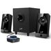 Dřevěný reproduktorový systém v konfiguraci 2.1 s celkovým výkonem 10 W RMS. 3,5" subwoofer nabízí dokonale hluboké basy a dva 2" satelity zajistí vysoké vokály. Potěší také ovládání hlasitosti, výstup pro sluchátka a vstup pro mikrofon na podsvíceném ovládacím modulu. Připojení je realizováno pomocí 3,5 mm jack konektoru. Napájení má na starost externí napájecí adaptér.