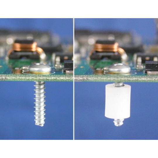Šrouby pro uchycení elektroniky + plastové sloupky. - 4 + 4 ks