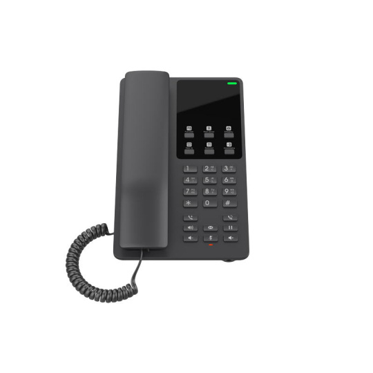Grandstream GHP621 patří do řady hotelových telefonů. Jde o snadno použitelný IP telefony do jakýkoliv hotelového pokoje, lze ho naprogramovat a přizpůsobit podle potřeb hotelu a jeho hostů. Mezi hlavní vlastnosti patří; jeden HD reproduktor na sluchátku, 2 SIP účty/linky, 10 rychlých voleb, 6 programovatelných tlačítek, 3-cestné audiokonference. Pak je to full band hlasový kodek Opus a pokročilý jitter-resilience algoritmus, který toleruje až 30% ztráty paketů bez dopadu na kvalitu hlasu.