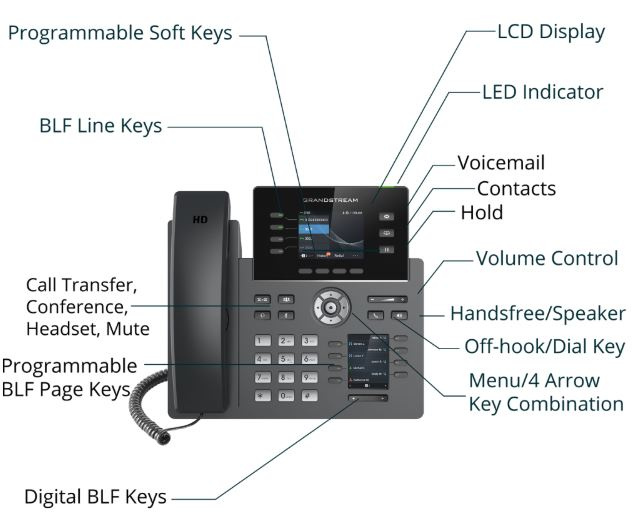 Grandstream GRP2614, 2.8" TFT bar. disp., 4SIP úč., 8prog. tl., 40virt. BLF tl., BT, dual Gbit