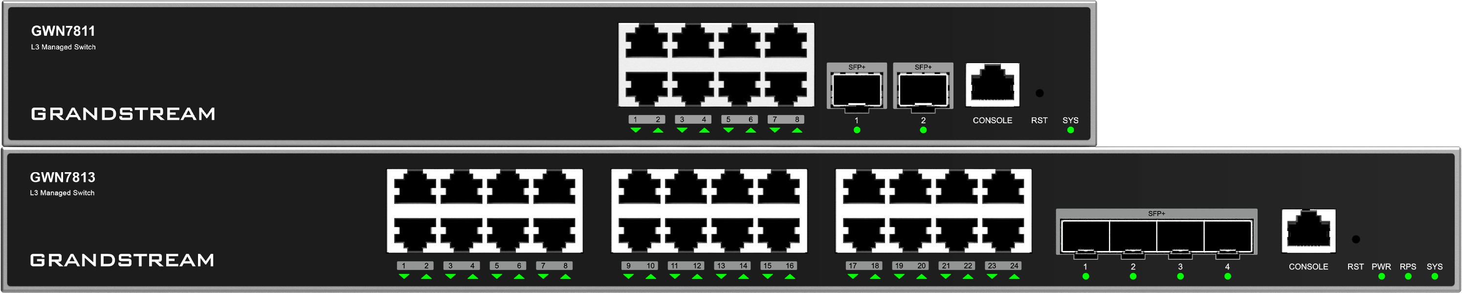 Řada GWN7810 zahrnuje modely: GWN7811, GWN7811P, GWN7812P, GWN7813, GWN7813P