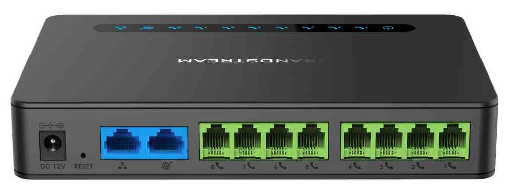 IP brána disponuje osmi FXS porty, dvěma SIP profily, duálním gigabitovým portem a integrovaným NAT routerem.