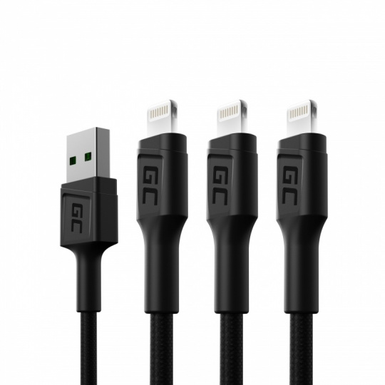 Green Cell Set 3x Cable GC Ray Lightning 200cm with white LED, quick charging Apple 2.4A