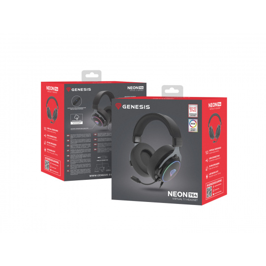 Herní sluchátka s mikrofonem Genesis NEON 764/7.1/USB/Drát/Stand/Černá