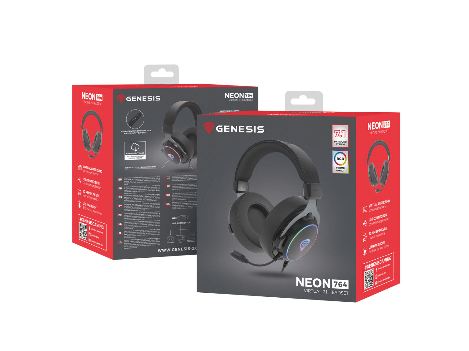 Převezměte kontrolu nad svým zvukem se sluchátky GENESIS Neon 764, která nabízejí nejen kvalitní zvukový čip integrovaný v ovladači, ale také pokročilý ekvalizér, který vám v kombinaci se zvukovými profily a virtuálním zvukem 7.1 umožní využít maximální potenciál sluchátek v jakékoli aplikaci. Pohodlí? O ten se již nemusíte starat. Hrajte celé hodiny, nastavujte a mějte nejdůležitější funkce vždy po ruce. To jsou sluchátka GENESIS Neon 764. SLYŠTE VÍCE Používáte integrovanou zvukovou kartu? Posuňte ji na vyšší úroveň s GENESIS Neon 764 a uslyšíte více. A to díky 50milimetrovým měničům i speciálnímu integrovanému čipu ovladače, který podporuje zvuk s vysokým rozlišením (24 bitů/96 kHz). Vyšší kvalita znamená, že budete těžit z většího množství detailů, a tedy i efektivity v dynamických akčních hrách. A pokud potřebujete více prostorového zvuku, můžete ho snadno dosáhnout aktivací virtuálního zvuku 7.1 - je to opravdu snadné. ZVUK PŘESNĚ PODLE VAŠICH PŘEDSTAV Kvalitní zvuková karta je jedna věc. Vedle ní vám sluchátka GENESIS Neon 764 umožní si zvuk přizpůsobit. Stačí použít vestavěné profily, které jsme vytvořili pro konkrétní aplikace. Chcete efektivněji lokalizovat protivníky ve hrách FPS? Předvolba "Scout" zvýrazňuje zvuky kroků. Soustředíte se na akci a raději si vychutnáváte každý výbuch? Předvolba 'Explosion' je pro to ideální. Nebo si jednoduše odpočiňte při zvucích své oblíbené kapely. Nastavení 'Hudba' vám poskytne ten nejlepší zážitek. Navíc si díky rozsáhlému ekvalizéru můžete snadno vytvořit vlastní zvuk, který uložíte do vybraného profilu. ZÁKLADNÍ FUNKCE VŽDY PO RUCE Víme, jak je pro hráče důležité používat další funkce. Proto jsme malý řadový ovladač vybavili funkcemi, díky kterým máte ty nejdůležitější na dosah ruky. Nastavte si podsvícení náušníků, upravte hlasitost, zapněte a vypněte mikrofon, přepínejte mezi dostupnými zvukovými profily, to vše během chvilky. JEŠTĚ VĚTŠÍ POHODLÍ Jsou tak pohodlné, že možná zapomenete, že je vůbec máte na hlavě. GENES Neon 764 nabízí osvědčená řešení a materiály, které vám zpříjemní hodiny hraní. Velké a měkké náušníky, na dotek příjemná tkanina umístěná na vnitřní straně čelenky a stupňovité nastavení. Pohodlná a odolná - taková jsou sluchátka GENESIS Neon 764. RGB PODSVÍCENÍ GENESIS Neon 764 je sada, kterou nikdo nemine s lhostejností. To vše díky plně přizpůsobitelnému RGB podsvícení skořepin. Jeho efekt a barvu si můžete snadno vybrat z palety dostupné v ovládací aplikaci. A pokud nechcete být při hraní ničím rušeni, jednoduše jej deaktivujte jediným kliknutím. NEJEN ZVUK Speciální software GENESIS Neon 764 umožňuje nejen upravovat zvuk nebo aktivovat virtuální zvuk 7.1, ale také spravovat nastavení mikrofonu - včetně automatického řízení zisku (AGC) nebo redukce okolního hluku (ENC). Dejte o sobě vědět a svobodně komunikujte s GENESIS Neon 764. VLASTNOSTI: - Virtuální zvuk 7.1 - Softwarově ovládané LED diody - Řídicí jednotka integrovaná se zvukovou kartou - Softwarové nastavení ekvalizéru SPECIFIKACE: Komunikace: Drátová Konektory: USB 2.0 typ A Typ sluchátek: Hlavový most Frekvence sluchátek: od 20 do 20 000 Hz Ztlumení mikrofonu: Ano Citlivost mikrofonů: -42 dB Mikrofonní frekvence: od 100 do 10 000 Hz Funkce dálkového ovládání: Přepínač EQ, Ovládání hlasitosti, Zapnutí/vypnutí mikrofonu podsvícení, Zapnutí/vypnutí mikrofonu Odpojitelný kabel: Ne Délka kabelu: 2,2 m Platforma: Android, PC, Sony PlayStation 4, Sony PlayStation 5 Barva: Černá Hmotnost: 425 g