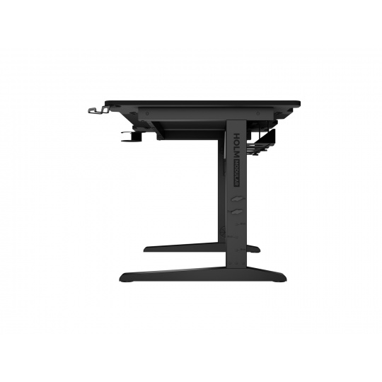 Nemusíte se obávat ani jeho výšky. Již ve fázi montáže si můžete vybrat z 5 úrovní, čímž určíte polohu stolové desky v rozmezí 70 až 90 cm. Můžete si ji tak snadno přizpůsobit své výšce, díky čemuž je stůl GENESIS Holm Modular plně ergonomický. Nastavitelná je také speciální police na kabely. Můžete ji prodloužit v rozmezí 50 až 95 cm, a přizpůsobit ji tak rozměrům celé stolové desky. Díky její hloubce se do ní snadno vejdou i velké přepěťové lišty.