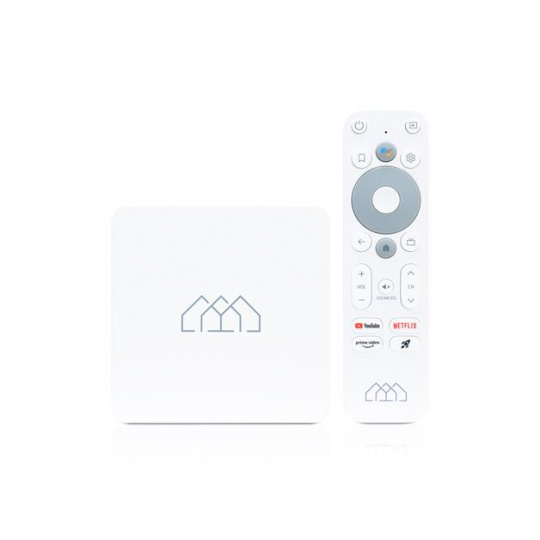 Obsahuje hlasového asistenta Google, předinstalované služby YouTube, Netflix, obchod Google play, Prime Video, vestavěný chromecast a podporuje nejpoužívanější aplikace, jako jsou KODI, HBO GO, WatchTV, Antik TV, Magio GO, Skylink a další. Dálkový ovladač slouží také jako mikrofon pro hlasového asistenta Google.