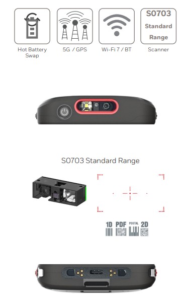 Odolný mobilní terminál nové generace s podporou Wi-Fi 7, vysokým výkonem a dlouhou výdrží baterie, navržený pro náročné průmyslové a logistické provozy.