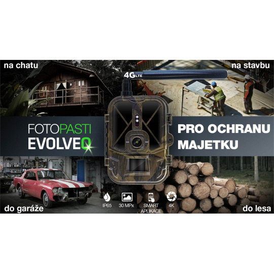 Fotopast lze použít univerzálně i k zabezpečení vašeho majetku, všude tam, kde nemáte pevné připojení k internetu pro běžný kamerový systém. Například na vaši chatu na stavbu domu, nebo jako zabezpečení garáže. Vždy když kamera rozezná pohyb informuje vás notifikací do telefonu, nebo na vaše chytré hodinky, V aplikaci se pak můžete podívat na zachycený snímek nebo video. Popřípadě díky funkci LiveView můžete vidět živý náhled. Díky integrovaným PIR čidlům Vám neunikne žádný pohyb a kamera se aktivuje jen v momentě, kdy je to potřeba, čímž se prodlužuje výdrž provozu na baterie.