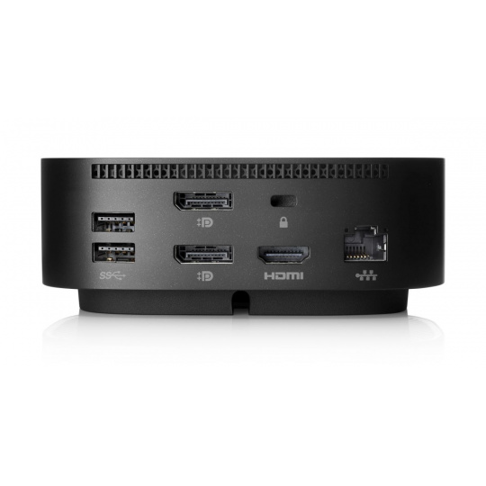 *Připojte kabel dokovací stanice k portu USB-C a používejte kabelovou síť, připojujte se k externím monitorům a k příslušenství prostřednictvím dvou portů DisplayPort, HDMI, RJ-45 a pěti portů USB (4x USB 3.0, 1x USB-C).