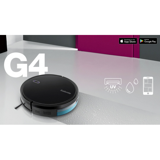 Salente G4 je schopen vaši podlahu vysávat, vytírat a desinfikovat pomocí vestavěné UVC lampy současně. Pomocí SMART gyroskopické navigace a snadné kontroly uklízeného prostoru pomocí mobilní aplikace v českém jazyce dokáže snadno, rychle a kvalitně uklidit váš členitý byt nebo dům a po ukončení úklidu se vrátit zpět do nabíjecí základny.