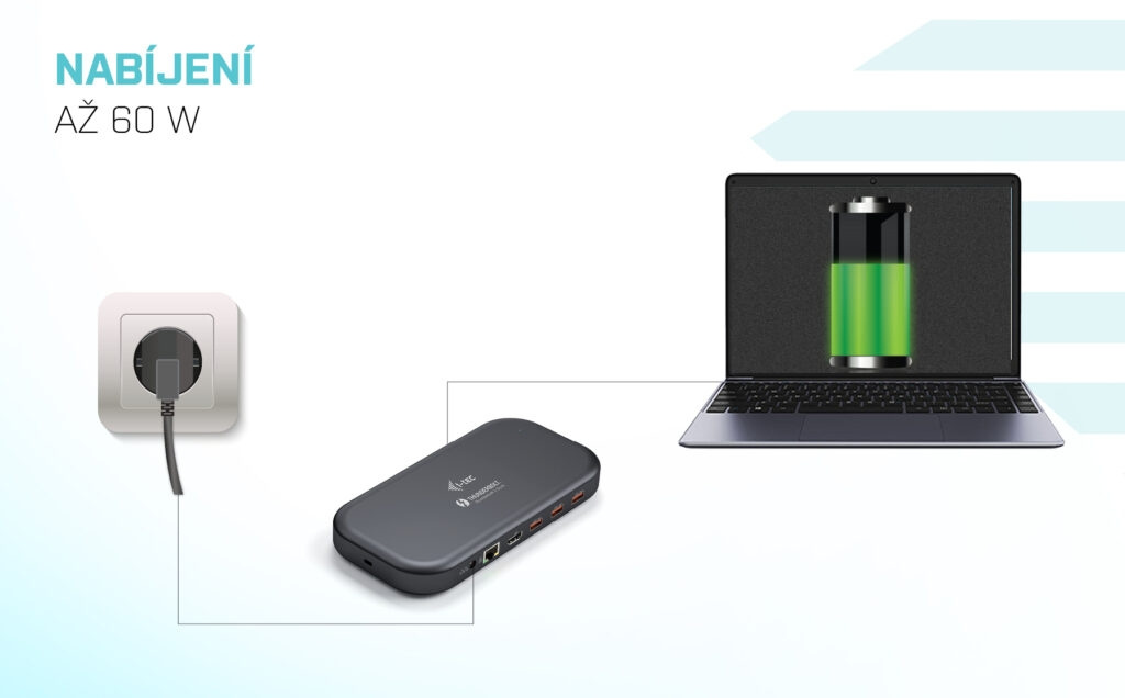 • Poskytuje až 60W Power Delivery pro kompatibilní notebooky a tablety s rozhraním USB4, USB-C a Thunderbolt. Hostitelské zařízení musí podporovat USB-C Power Delivery.