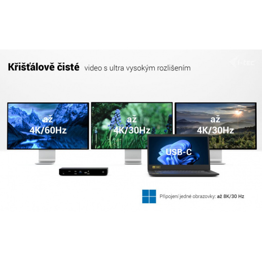 Ultra vysoký výkon, ultrarychlý přenos dat a podpora rozlišení až 8K/60 Hz. Jedna z nejvýkonnějších dokovacích stanic i-tec na trhu!