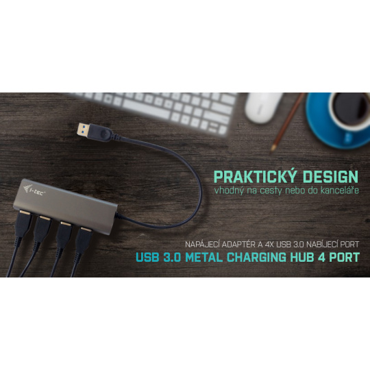 i-tec USB 3.0 Metal Charging HUB je ideálním doplňkem pro každého, kdo má ve svém notebooku, ultrabooku nebo PC nedostatek USB portů a je nucen neustále připojovat a odpojovat svá oblíbená USB zařízení, jako jsou flash disky, mobilní telefony, tablety, digitální fotoaparáty, MP3 přehrávače, tiskárny, apod.