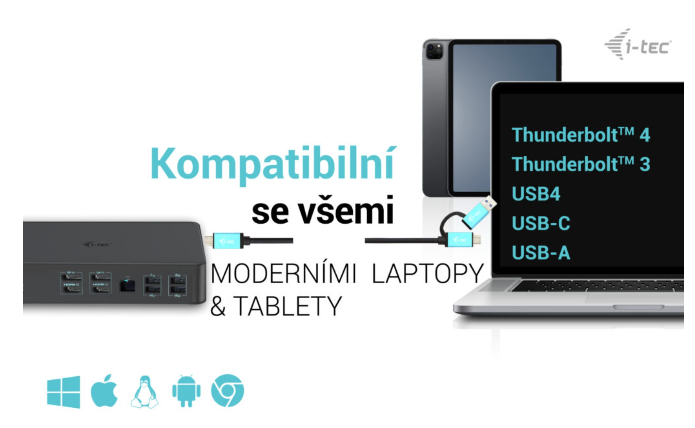• Profesionální univerzální dokovací stanice, kompatibilní s notebooky a tablety s rozhraním USB-C, USB-A a Thunderbolt.