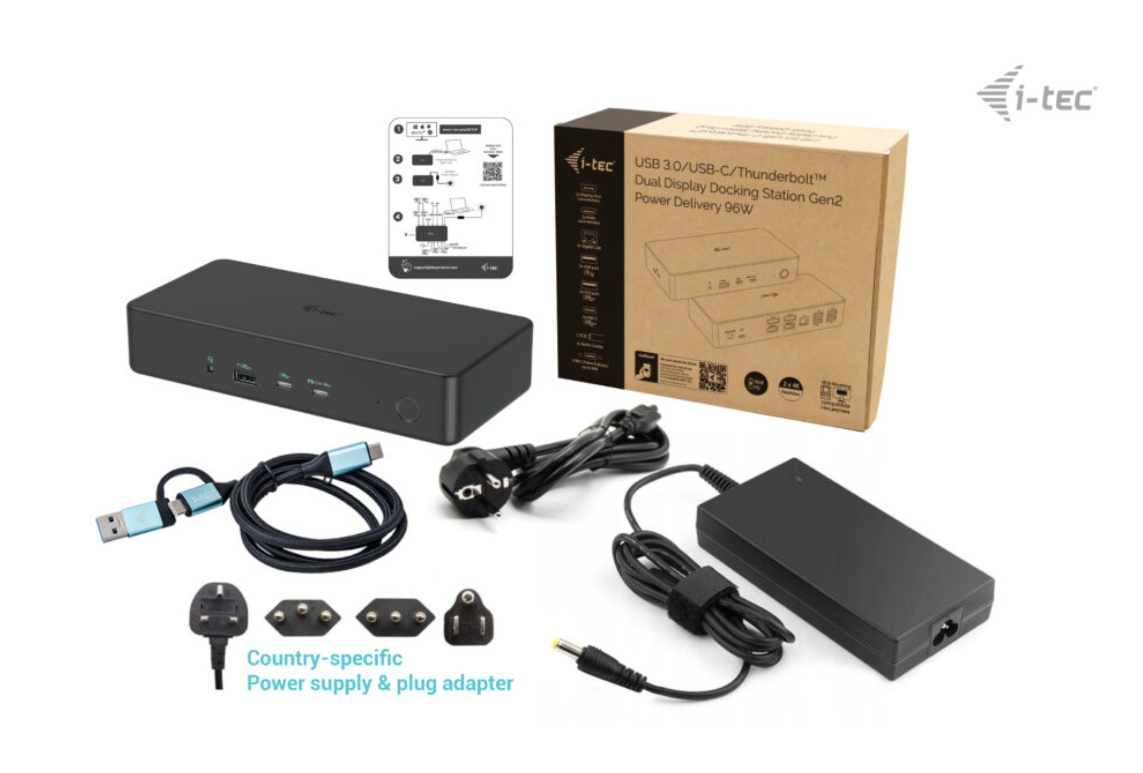i-tec USB 3.0/USB-C/Thunderbolt 3 Professional Dual 4K Display Docking Station Gen2, PD 100W