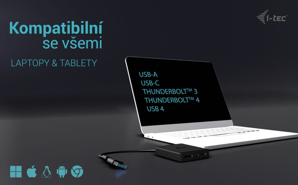 Před použitím adaptéru je nutná krátká jednorázová instalace ovladače DisplayLink. Další informace naleznete na adrese www.i-tec.pro/setup-2.
