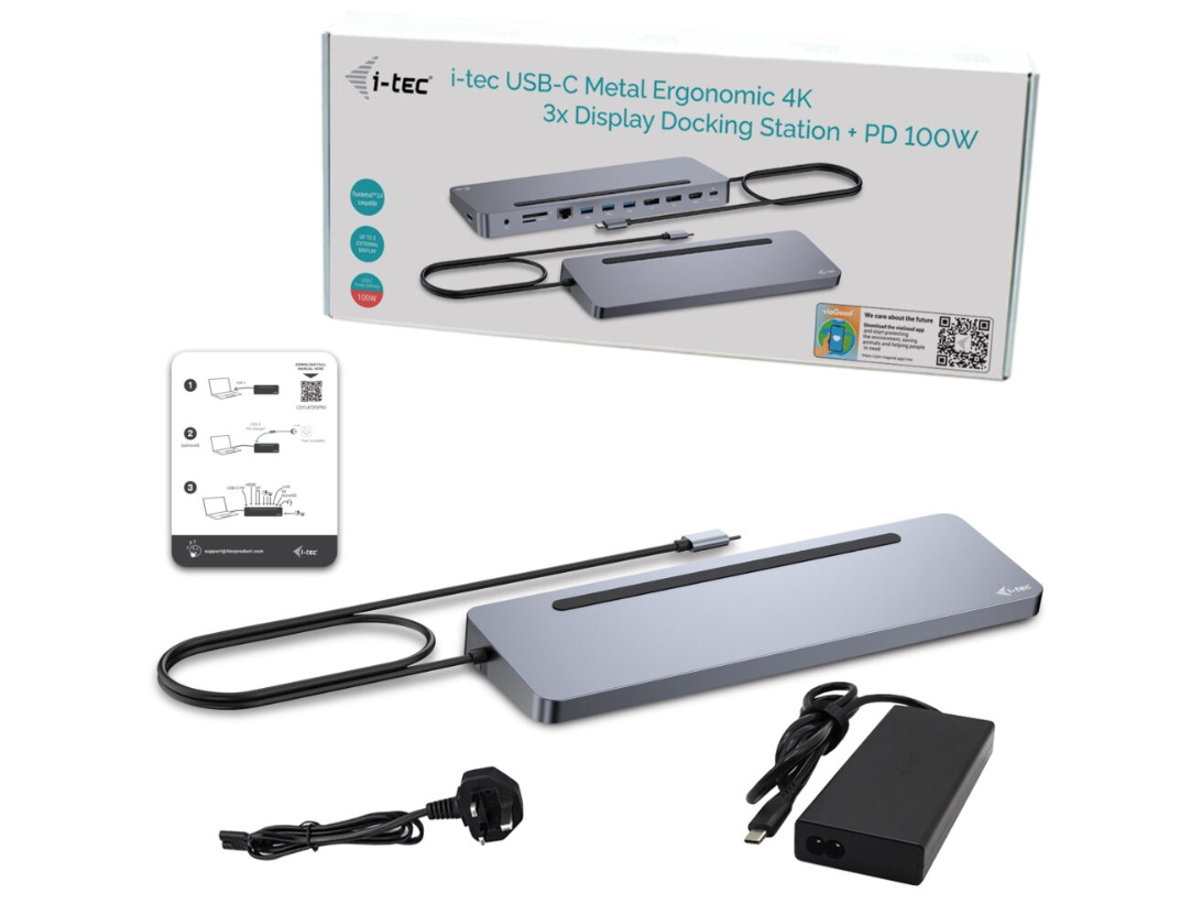 i-tec USB-C Metal Ergonomic 3x 4K Display Docking Station, PD100W + i-tec Universal Charger 100W