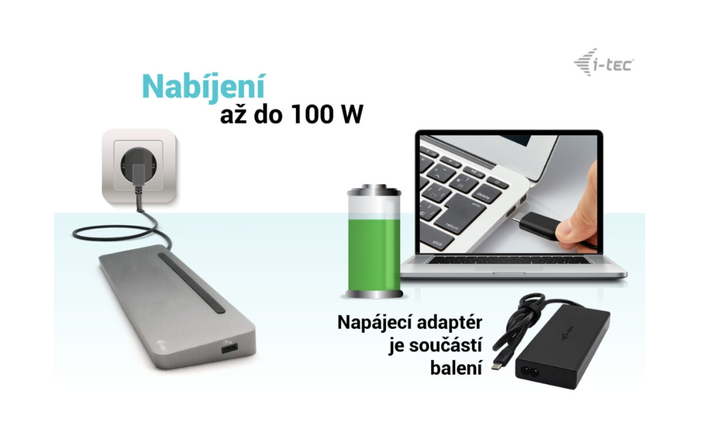 • Poskytuje až 100W Power Delivery pro kompatibilní notebooky a tablety s rozhraním USB-C a Thunderbolt. (Hostitelské zařízení musí podporovat USB-C Power Delivery).