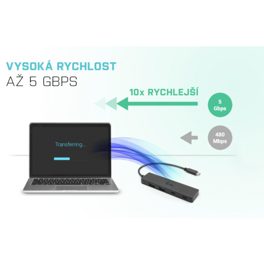 S tímto hubem získáte další 4 další USB: dva standardní USB 3.0, a dva USB-C porty. Připojte si externí klávesnici a myš, přenášejte data nebo filmy z USB flash disku rychlostí až 5 Gbps nebo nabíjejte svá mobilní zařízení nabíjejte (standardní USB rychlostí 0.9A).