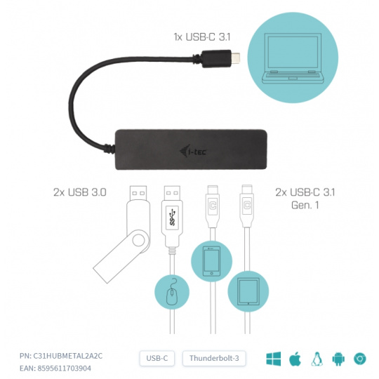 i-tec USB-C Metal HUB 2x USB 3.0 + 2x USB-C