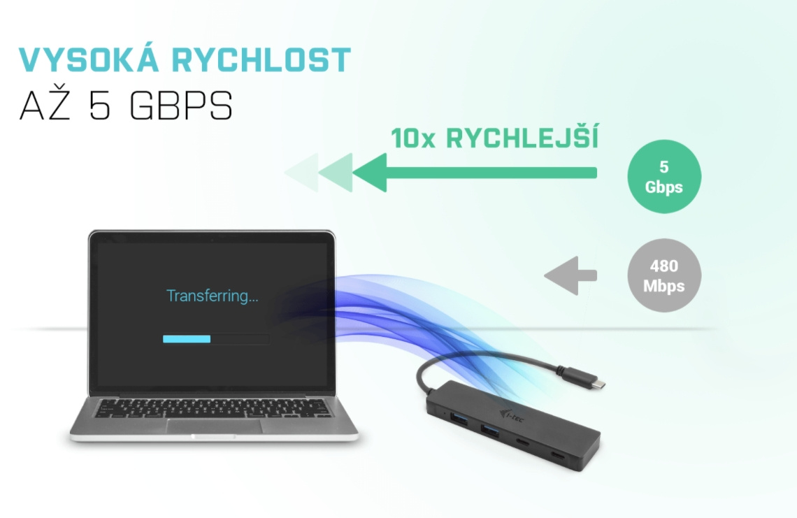 S tímto hubem získáte další 4 další USB: dva standardní USB 3.0, a dva USB-C porty. Připojte si externí klávesnici a myš, přenášejte data nebo filmy z USB flash disku rychlostí až 5 Gbps nebo nabíjejte svá mobilní zařízení nabíjejte (standardní USB rychlostí 0.9A).