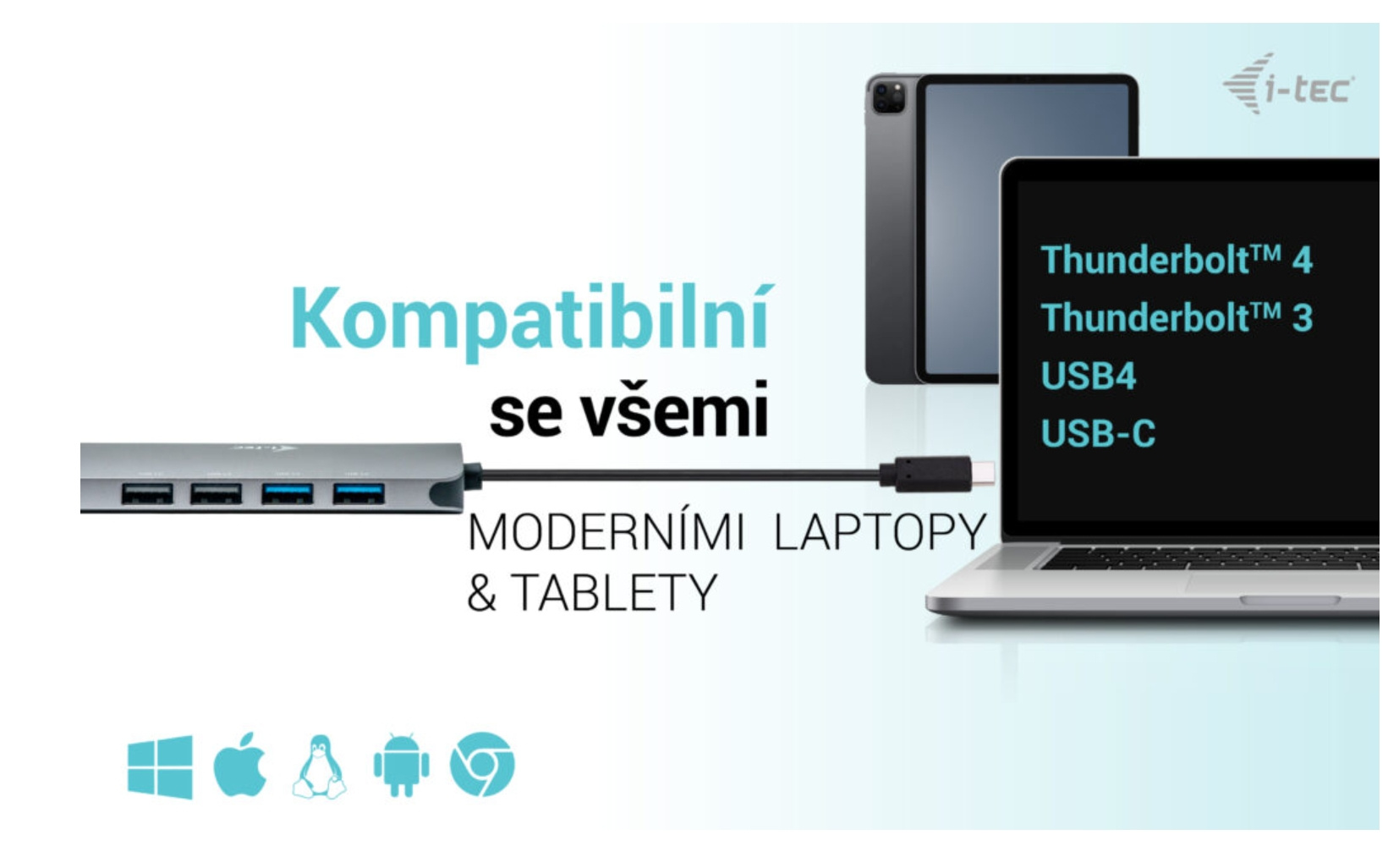 Dokovací stanice je také plně kompatibilní s tablety a notebooky vybavenými portem Thunderbolt 3/4.