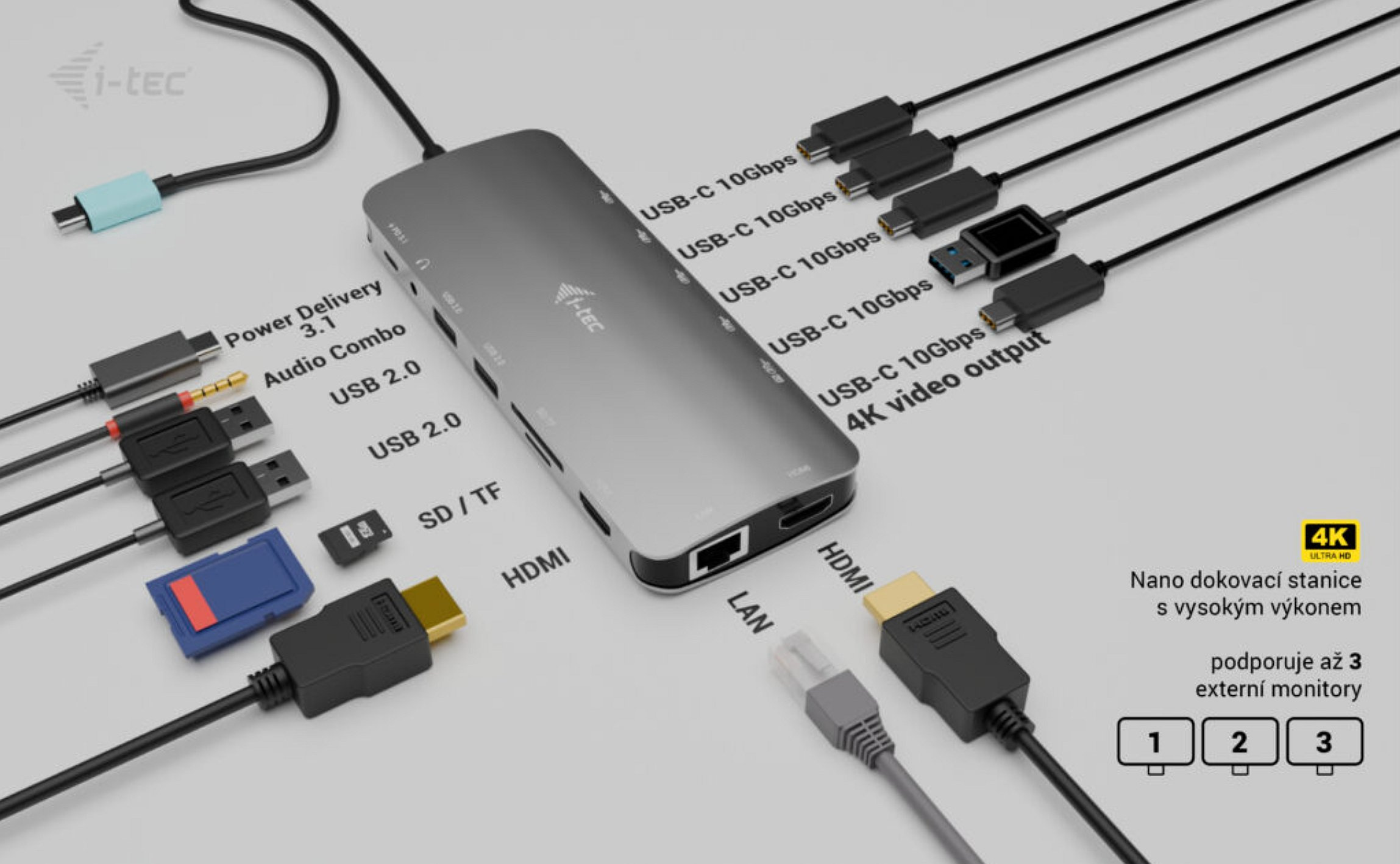 • Technologie dokovací stanice: USB-C MST + USB-C PD 3.1
