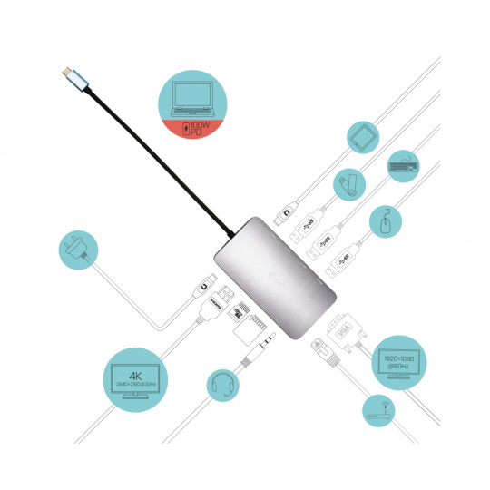 i-tec USB-C Metal Nano Dock HDMI/VGA with LAN, Power Delivery 100 W + zdroj 100W
