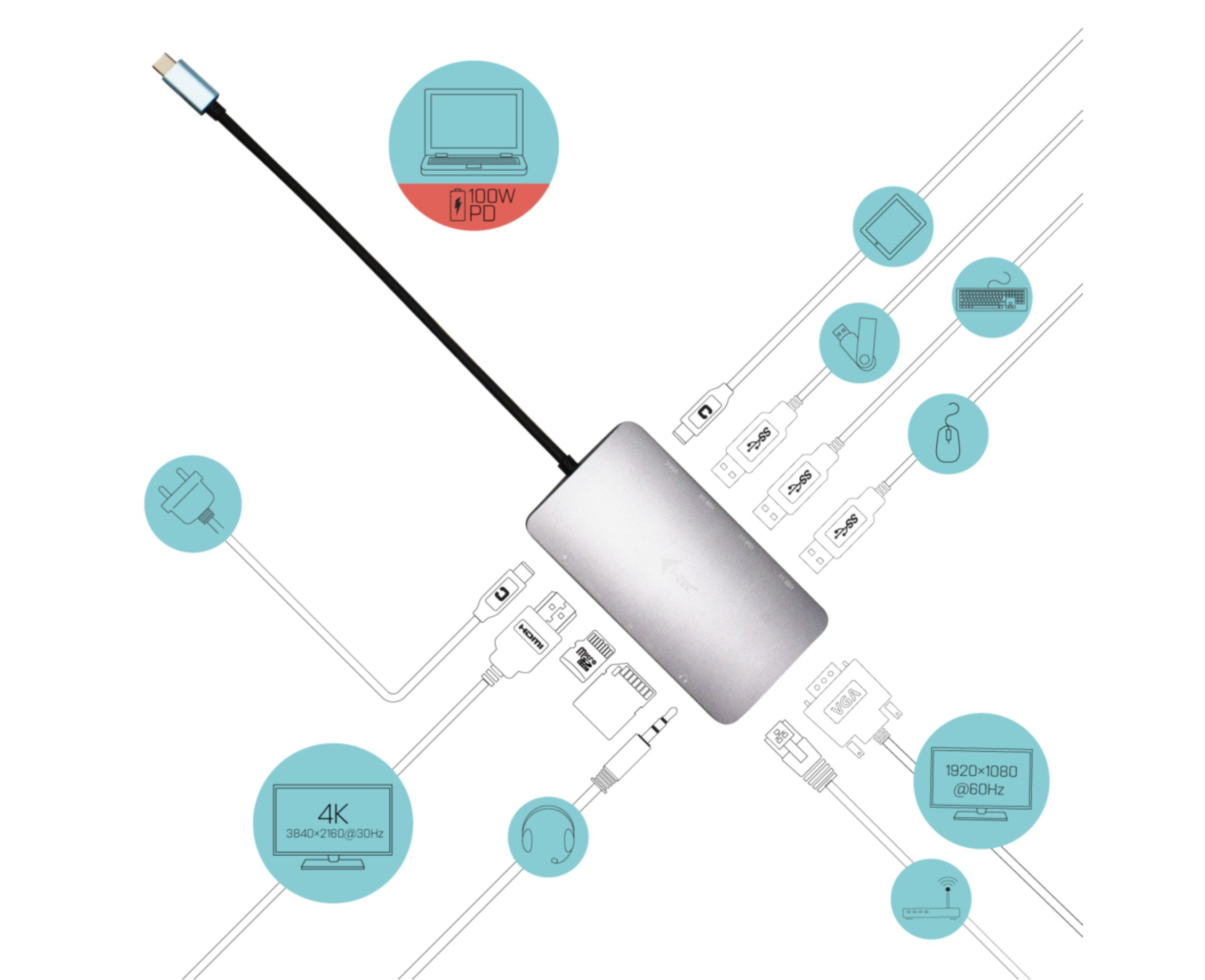 i-tec USB-C Metal Nano Dock HDMI/VGA with LAN, Power Delivery 100 W + zdroj 100W