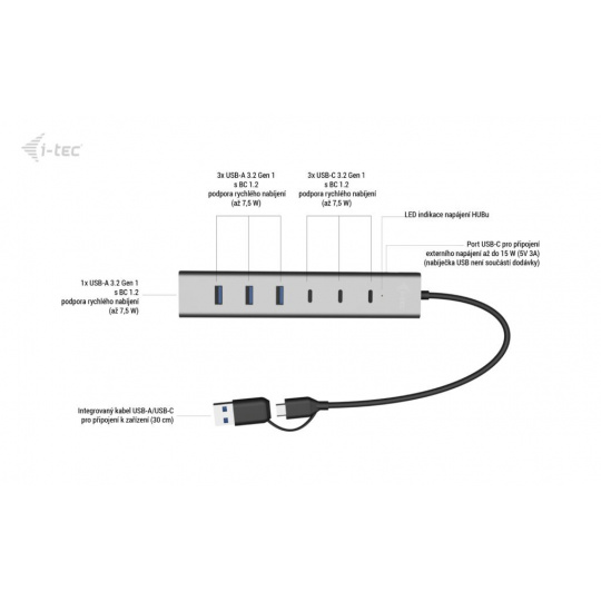 i-tec USB-C/USB-A Charging Metal HUB 7 Port (3x USB-C, 4x USB-A)