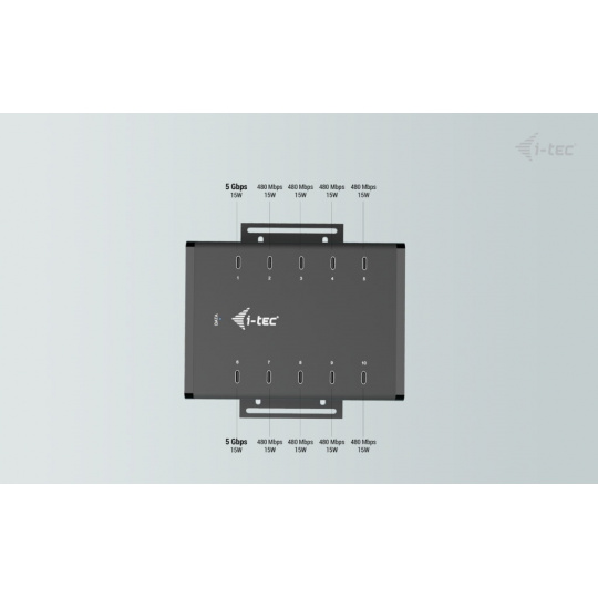 I-tec USB-C/USB-A Metal Charging+Data HUB, 15W per port, 10x USB-C, 180W
